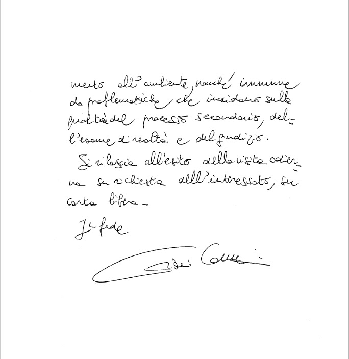 In data 23 dicembre 2012 avrei incontrato in Procura letteralmente fuori di testa il PM esoterico s...a Stefano Pesci che mettendosi di lato nel corridoio al primo piano, con un ghigno feroce e roteando le mani minacciosamente pronunciava con tono cadenzato una frase insensata non tanto per il contenuto letterale apparente ma per modalità espressive quasi rituali "ti dèvi curare ... ti dèvi curare" e difatti il termine curare in quegli "ambienti" ha un significato di lavaggio del cervello e sottoposizione alla psichiatria deviata, niente a che fare col diritto alla salute. Allora per me era una immagine e situazione ancora "folle" .. non avevo ancora ricevuto i "chiarimenti" della ex moglie di generale esoterico deviato dell'esercito ....