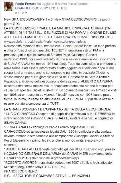 E DIETRO A TUTTE LE VICENDE L'OMBRA E L'INTERROGATIVO ULTERIORE CHE RACCHIUDE TUTTO : PAOLO FERRARO AVEVA CAPITO TROPPO ANCHE DEGLI EVENTI CHE RISALGONO SINO ALL'8 AGOSTO 1990 ?!