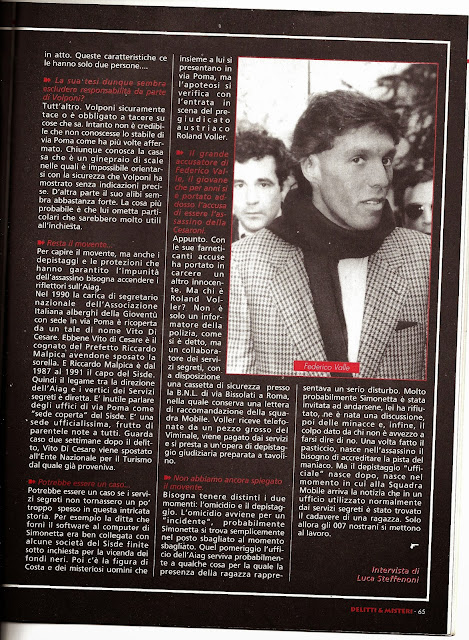 L'Agosto del 1990 fu funestato dall'omicidio di Simonetta Cesaroni, nella via che conoscevo solo di nome come la via degli ufficiali giudiziari: via Poma. E si tratta di un crocevia. ADDE: Ma allora non capii un bene amato nulla: per me la cronaca nera era un settore privo di interesse e con categorie penali lineari minori, "pane giornalistico per gli incolti" guardato sulle pagine dei giornali con disinteresse e supponenza (mia).