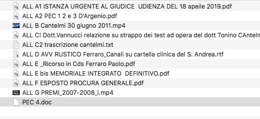 Esterrefatto mi trovo a dover osservare che non solo Lei non ha integrato vaglio  e valutazioni e tenuto in alcun conto le precedenti che di seguito le allego cariche  di certificazioni e relazioni ma continuato a parlare di produzioni della controparte come se non sapesse o non avesse valutato ogni elemento a riguardo. Inoltre continua ad oscurare la MOGLIE del  dott. Ferraro e compagna da un decennio .. quasi.