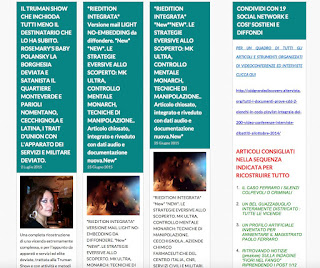 LA Vicenda, per i diretti coinvolti, le coperture eccellenti, la criminale mobilitazione di psichiatri deviati e per la estensione a fatti ed ambiti vari ( di livello nazionale e contesto internazionale anche, emergendo connessioni europee ed utilizzo di tecniche di manipolazione mentale di provenienza militare - progetto MONARCH – ) si presenta poi eclatante, ma sempre clamorosamente vera.