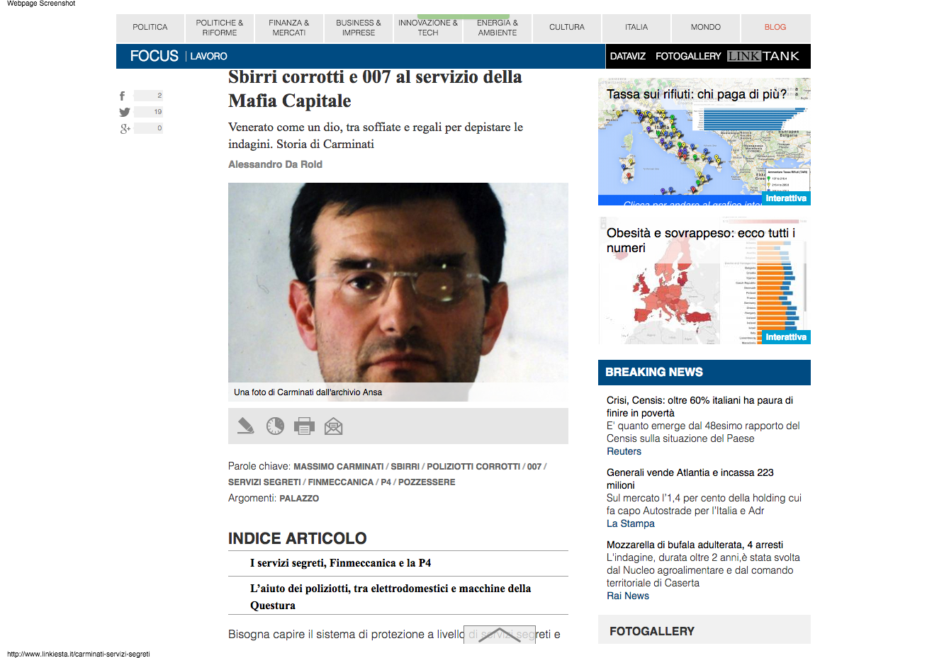04.12.2014 18:44Il procedimento penale gestito e portato a compimento del Procuratore di Roma Giuseppe Pignatone su un cemento criminale di poteri, affarismi, corruttele e attività in parte solo coperte da servizi e ufficiali deviati, anche se ancora connotato essenzialmente nelle componenti tangentizie e affaristiche da "mondo di mezzo" di una mafia-capitale organizzata a stampo criminale, costituisce in sè una notizia forte e positiva, e foriera di possibili sviluppi addirittura ben più importanti.