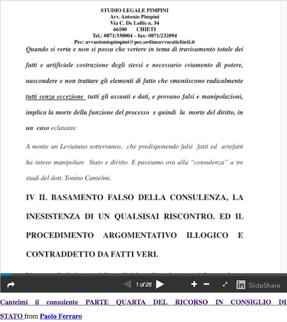 Ma vi sono due recenti indicazioni ( NON DI PROVENIENZA DEL DOTT. FERRARO) reperire in rete ed opera di un attento e informatissimo osservatore certamente "professionale" che si pongono alla speciale attenzione del giudice e del collegio (ALL H2 e H3 in formato foto, screenshot estratti) il cui testo non si trascrive qui, ma oltre, e presenta “speciale” interesse.