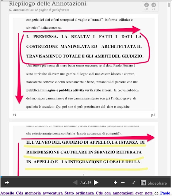Ma vi sono articoli pubblici “multimediali” che attestano sinanche lo studio attento delle prove AUDIO, VIDEO AUDIO; da registrazioni tra presenti registrazioni di telefonate e sinanche intercettazioni ambientali. video audio di contestualizzazione(, articolo con brogliacci e due strumenti integrali di consultazione OFF LINE IN DVD nelle apposite directory www.paoloferrarocdd.eu e www.grandediscevery.it (cliccare per attivazione sul file index.html nelle due directory principali).