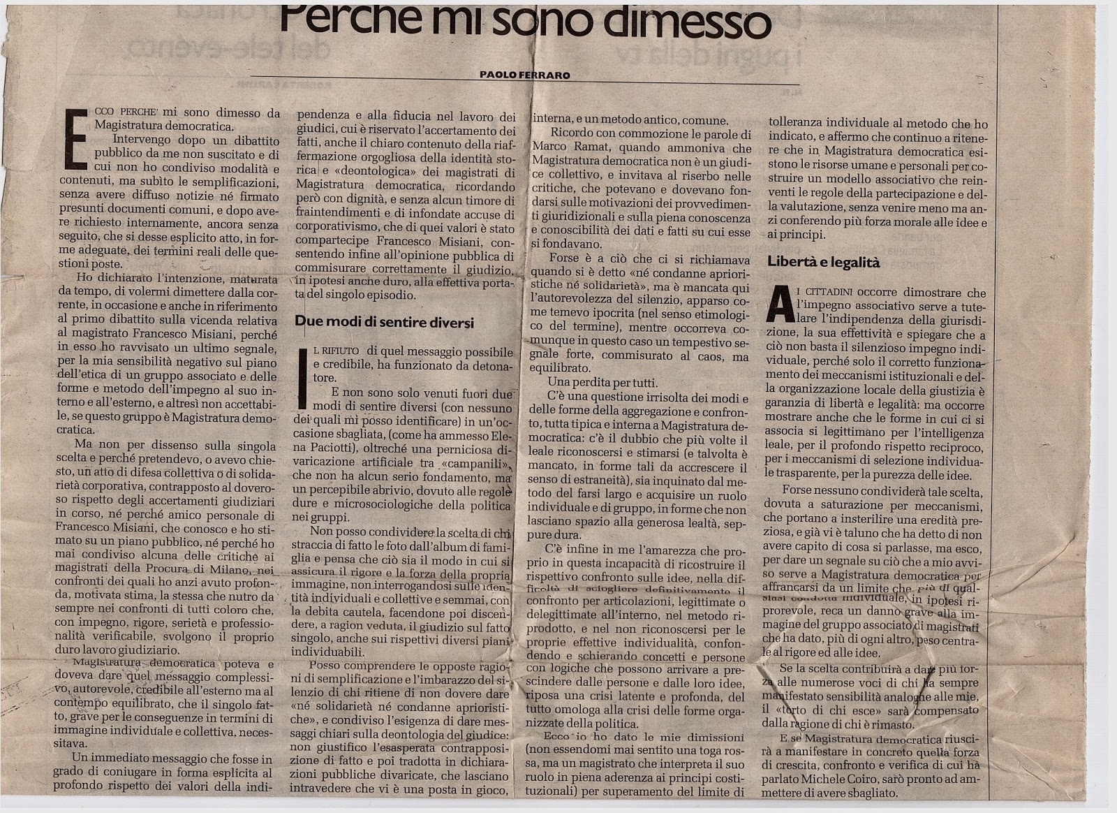 Quell'olezzo e quel maleodorante puzzo era già dentro le istituzioni e Borsellino lo avava, sconvolto, capito da poco sino in fondo .. mente Falcone dall'esperienza romana aveva tratto conferme e intuizioni. Io ero allora un giovane magistrato impegnato .. fummo accerchiati forse in tanti senza saperlo .. in quell'anno tremendo .. io intuivo riflettevo cercavo di capire ma non avevo niente altro che la sensazione che in una certa magistratura romana accadeva qualcosa di progressivo e inarrestabile che sfuggiva alle nostre consapevolezze più profonde .. mi battei per una magistratura democratica e rispettosa dei valori costituzionali con altri sino al 1996 quando accadde che "il richiamo al salto da associazione ad organizzazione" in MD iniziò a farmi dischiudere gli occhi. Oggi che, in onore di Giovanni e Paolo anche, ho portato a tenmine la grandediscovery e sapete ormai della concretezza di un cerchio sotterraneo che funge da cemento di potere trasversale e, sopra il IX girone, di attività metodologie e strumenti e saperi utilizzati da concreti apparati, concreti uomini dello Stato e delle istituzioni e delle forze armate e delle professioni, lasciate nel silenzio colui che ha da solo proseguito e portato a conclusione il lavoro che serviva ad emancipare la gente e gli italiani, anche. Non ho messo in gioco tutto me stesso per vedervi guardare: la STORIA INSEGNA .. abbiate il coraggio della vostra coscienza conoscenza acquisita e l'etica e morale di chi è morto già per noi.
